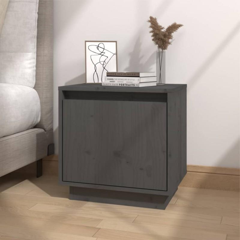 Day and Night - Day and Night Solid Gray Pine Wood Bedside Table 40x30x40 Cm
