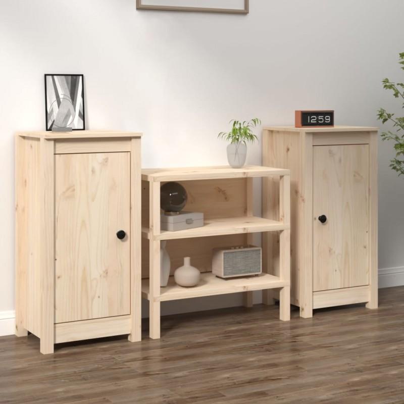 Enjoy a tidy living room with these wooden sideboards! The practical sideboard will satisfy your various needs and is an ideal addition to your room.. Solid pine wood: Solid pine wood is a beautiful natural material. Pine wood has straight grains, and the knots give the material its distinctive rustic look. Ample storage: The cabinet provides ample storage space to keep your various essential items well organized and within easy reach. Sturdy surface: The sturdy surface of the sideboard is ideal for placing decorative objects, photo frames or plants. Two mounting options: The cabinet door can be installed on the left or right according to your needs. Warning:To prevent overturning, this product must be used with the provided device to fix it to the wall.Note:Each product comes with an assembly manual in the box for easy assembly. Material: Solid pine wood (without treating)Dimensions (each): 39 x 35 x 80 cm (width x depth x height)Delivery includes:2 x SideboardLegal Documents:You can find more details on how to prevent furniture from tipping over here Do not use this item if any components are broken, torn or missing.. Claims will only be attended to up to 5 days after receiving your order.