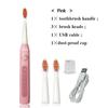 Ultrasonic Electric Toothbrush Sonic Wave Clean USB Rechargeable Toothbrush with Replacement Brush Heads 1 Handle 3 Heads