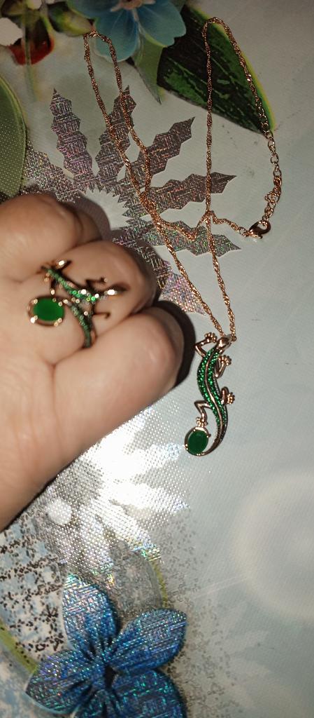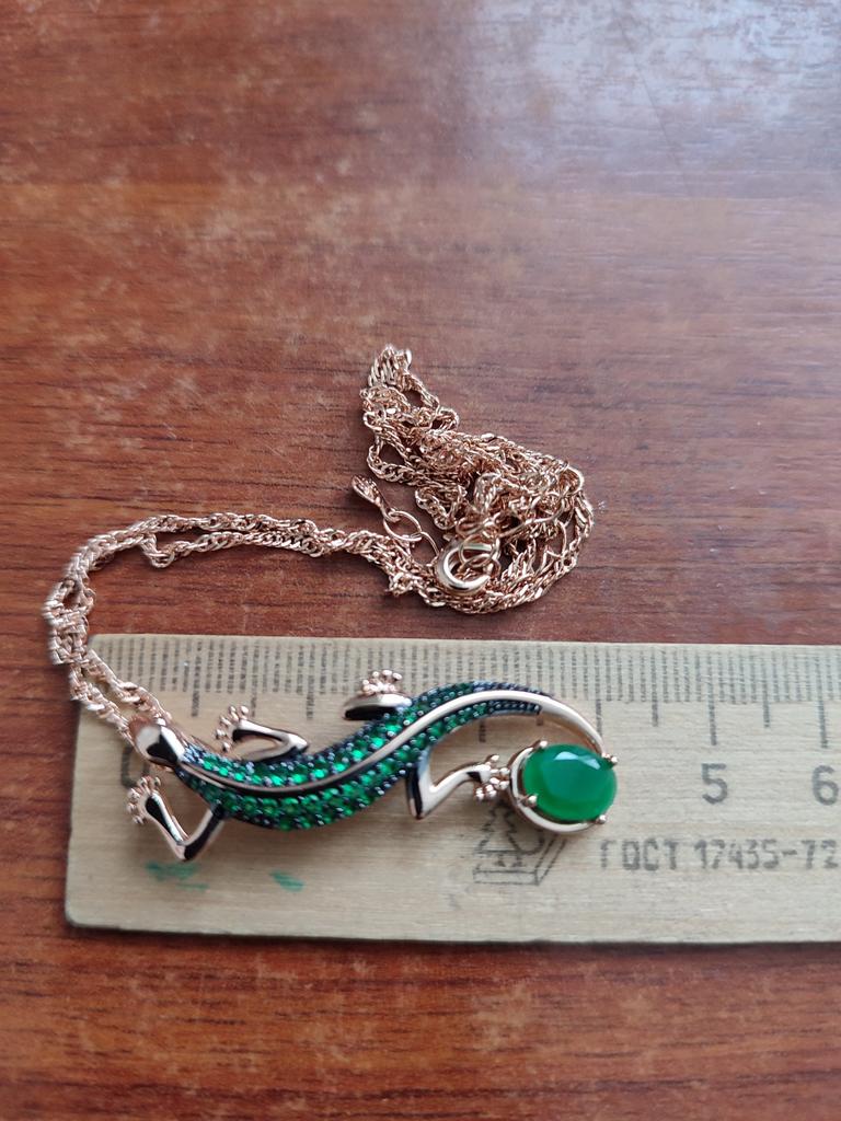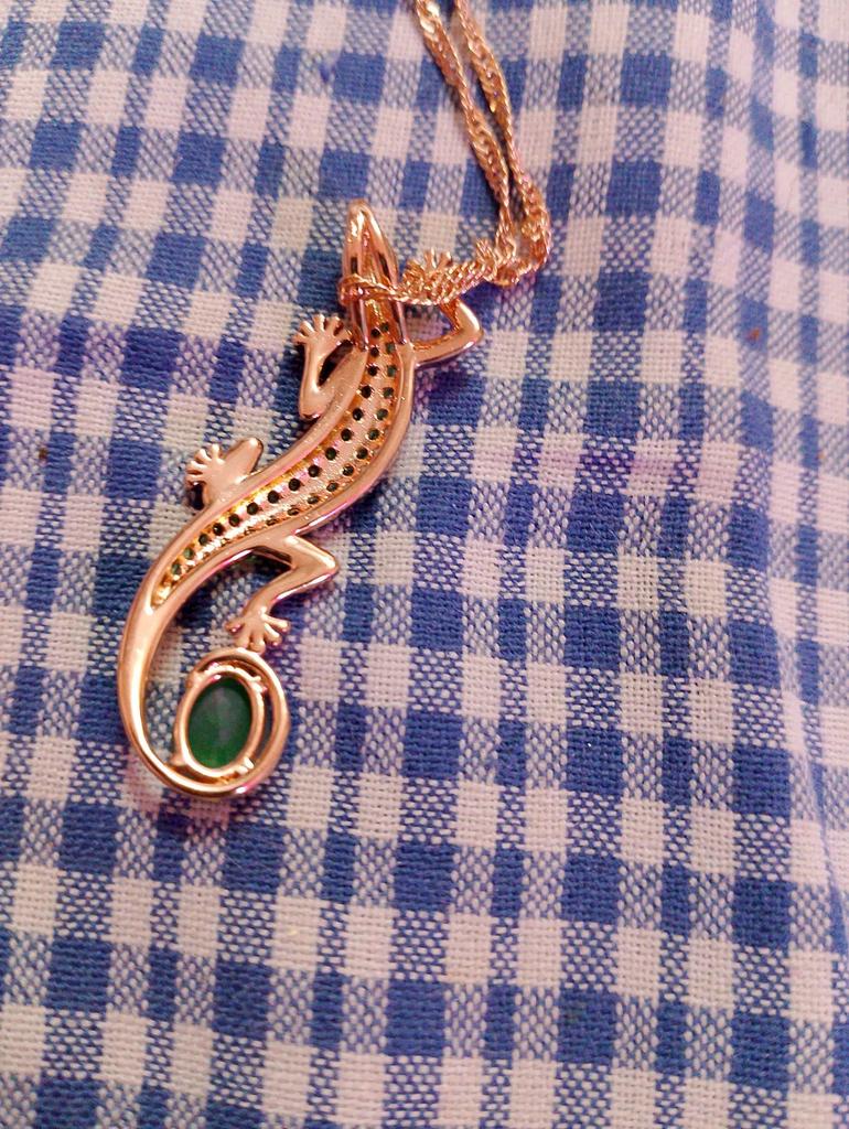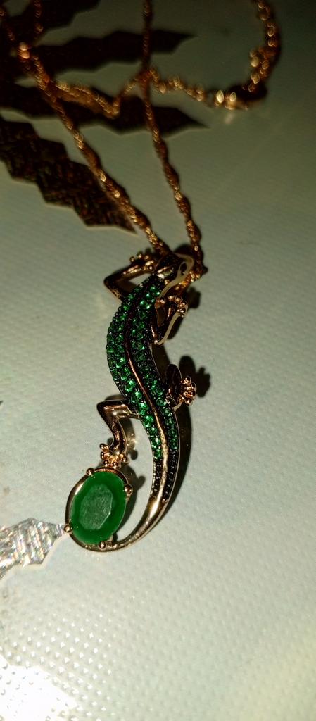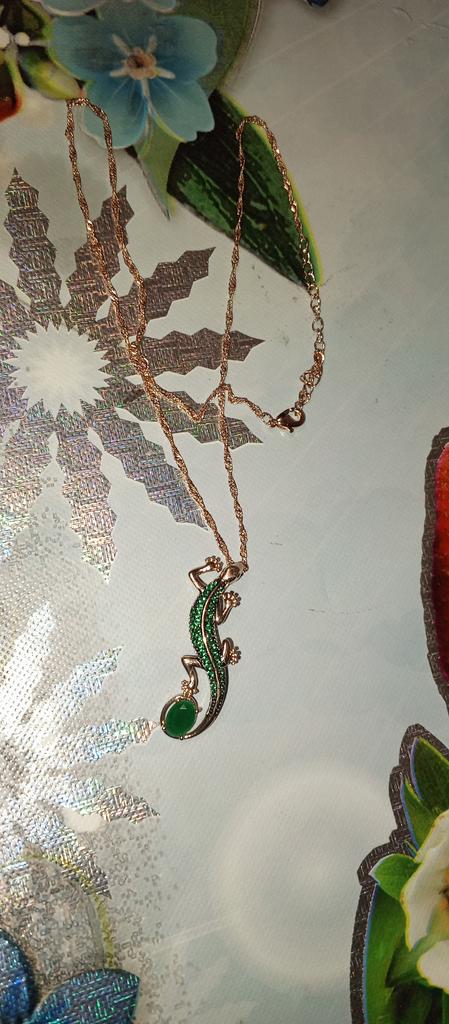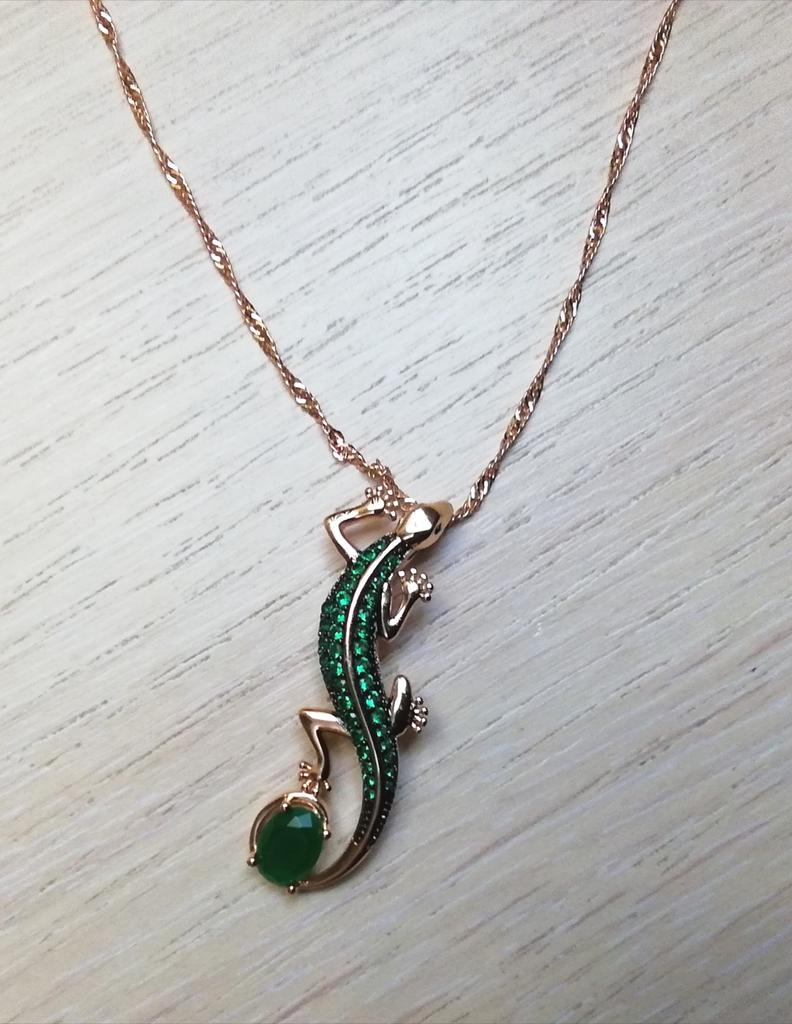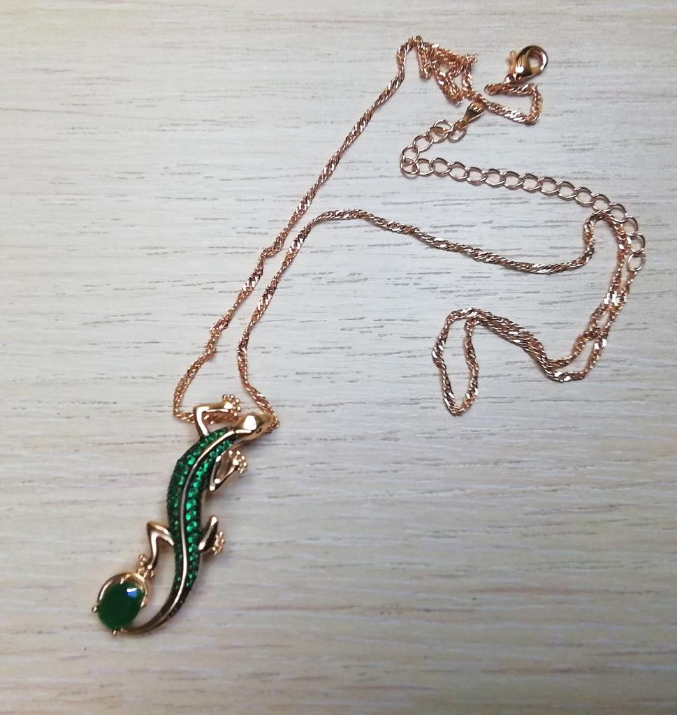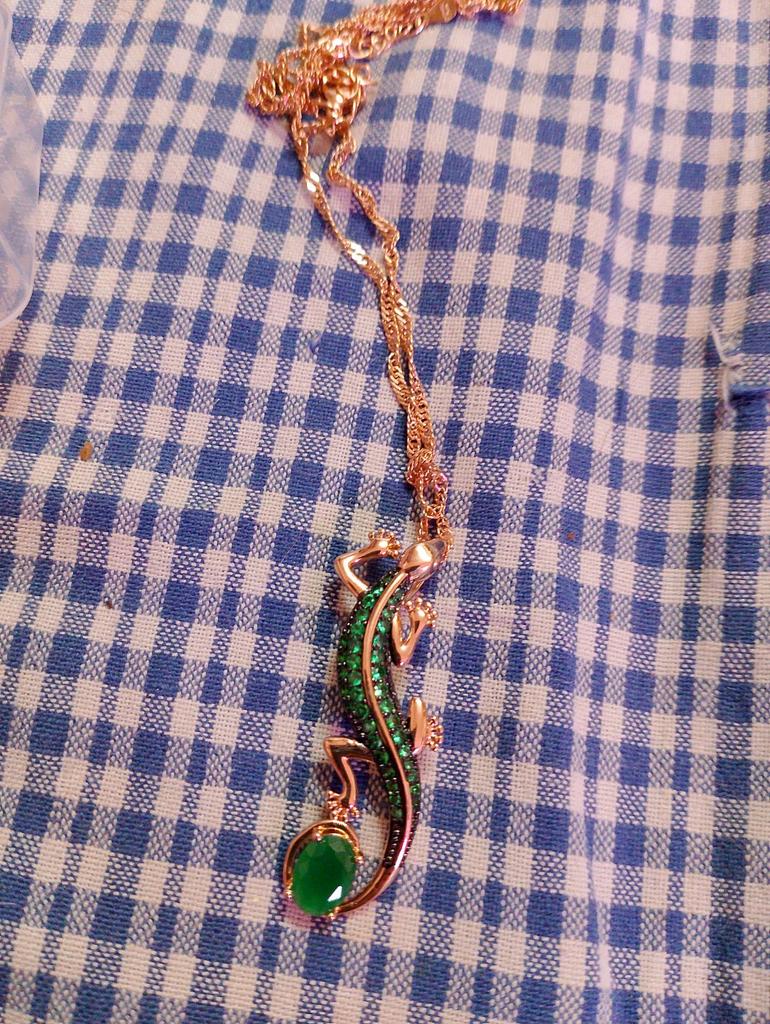 A pendant in the form of a lizard, very original, quite large, matches all my jewelry with green stones. I am happy with the purchase, I recommend it.