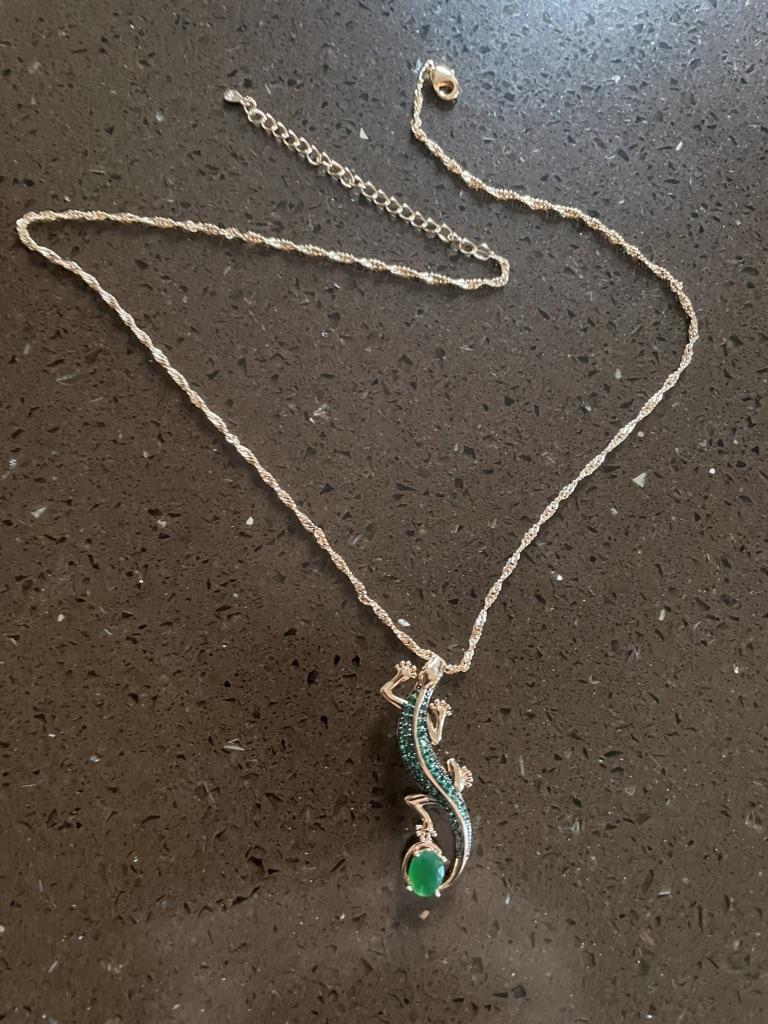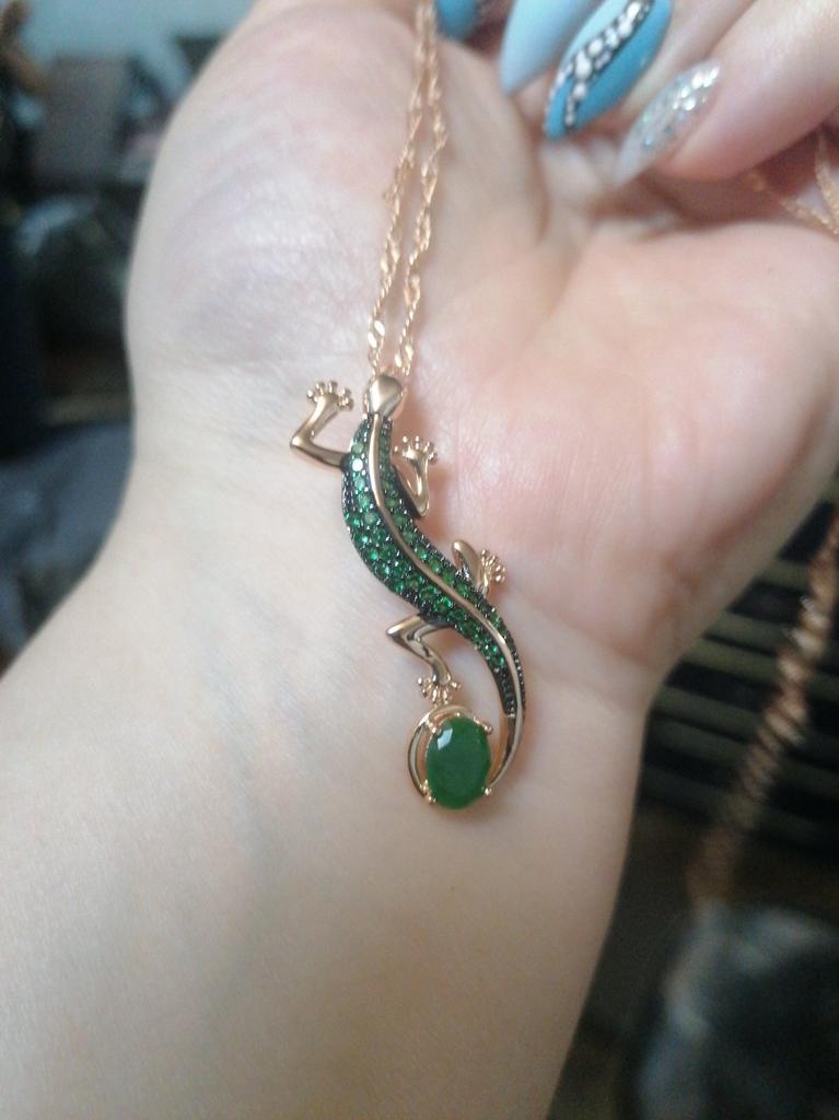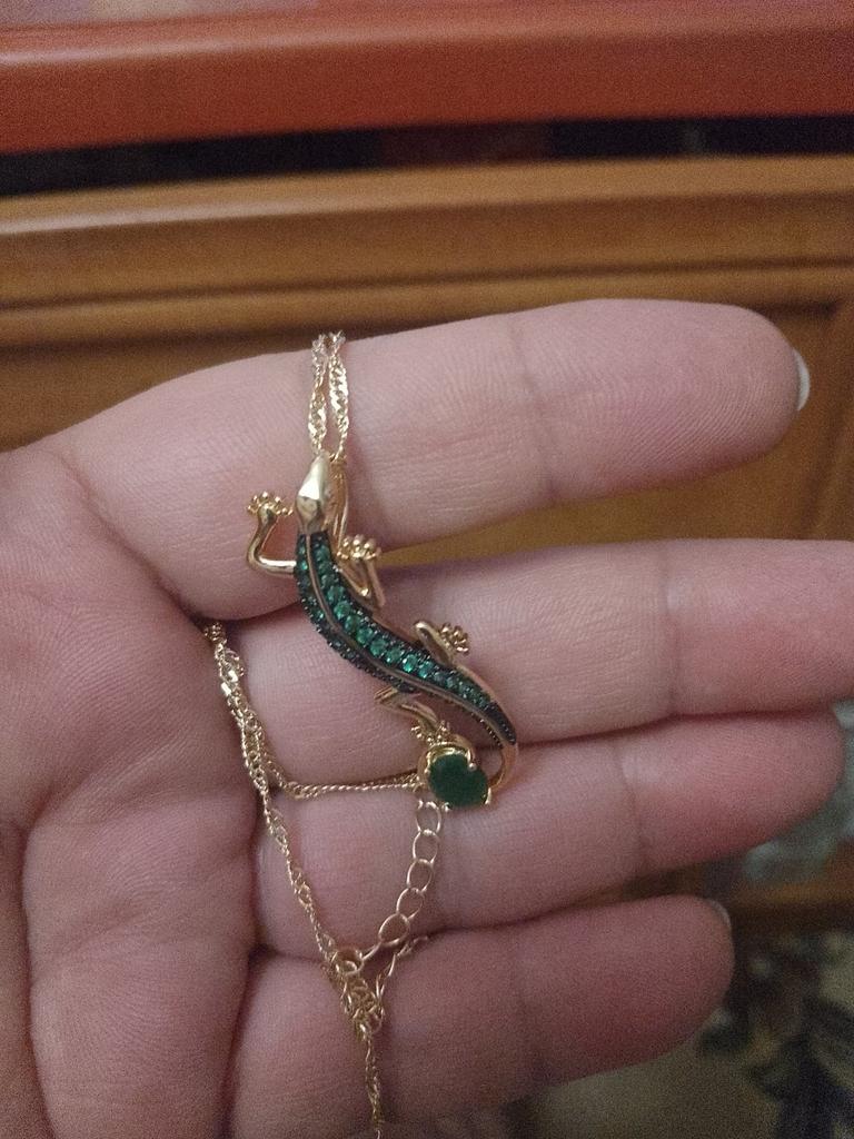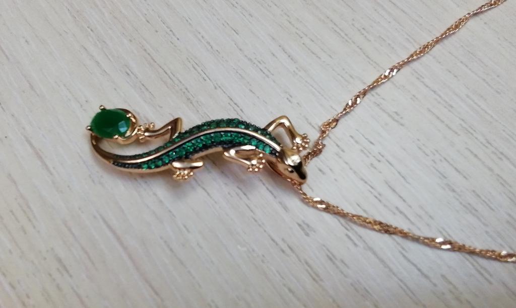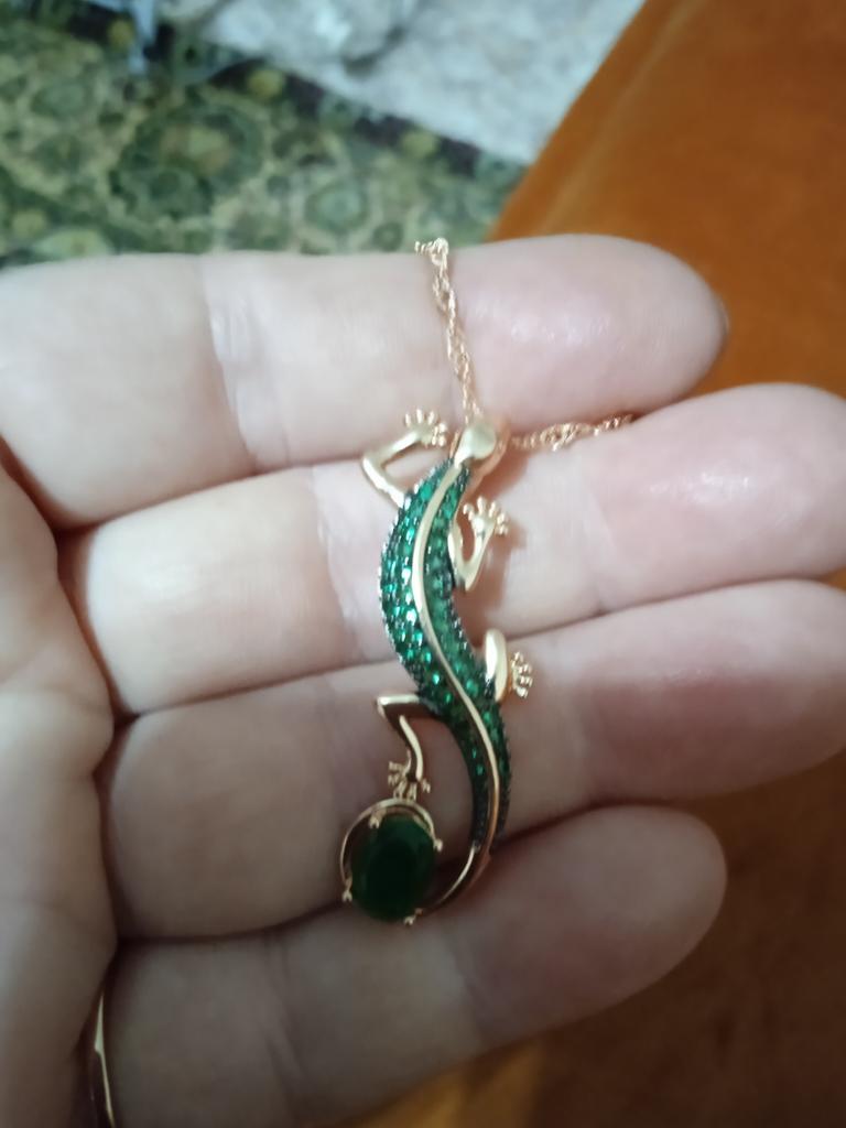 Cool pendant, shines with emeralds! I've wanted a salamander for a long time. Thank you Joom!