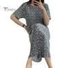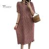 Style: Embrace the chic simplicity of this floral dress for women, featuring a timeless round neck and pleated short sleeves. The understated design exudes sophistication and effortless style, perfect for both casual outings and special occasions.