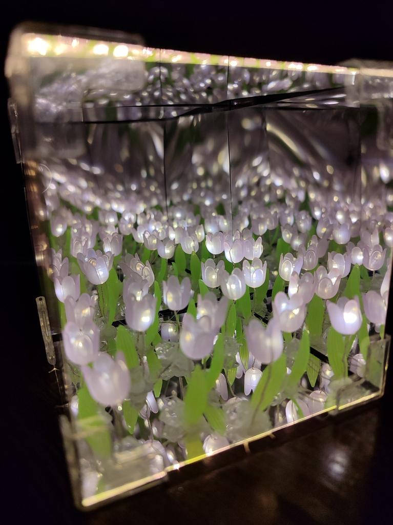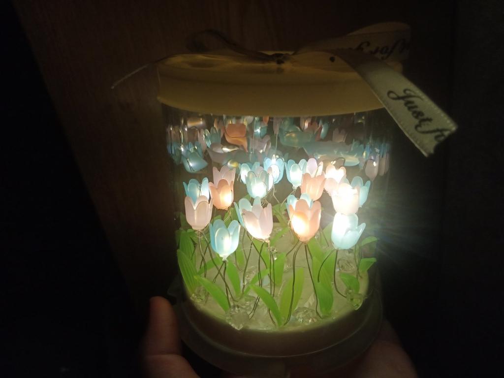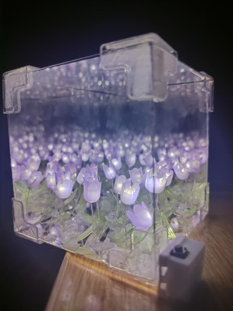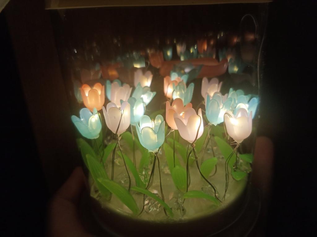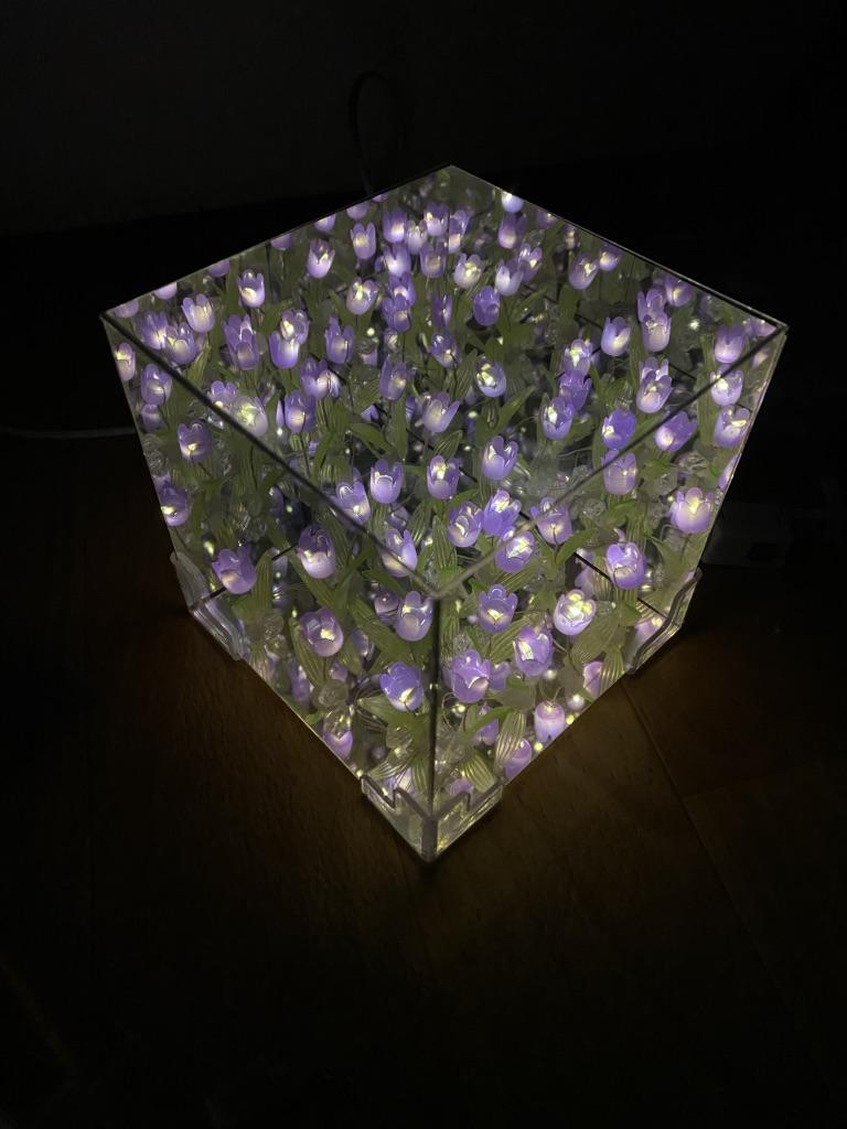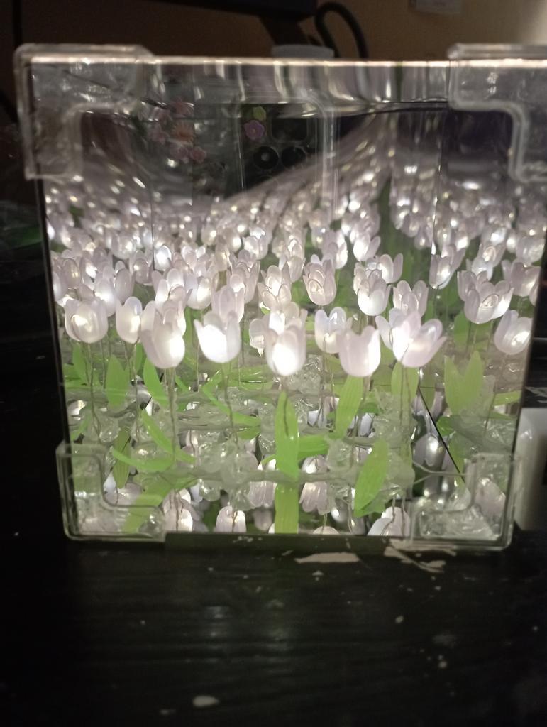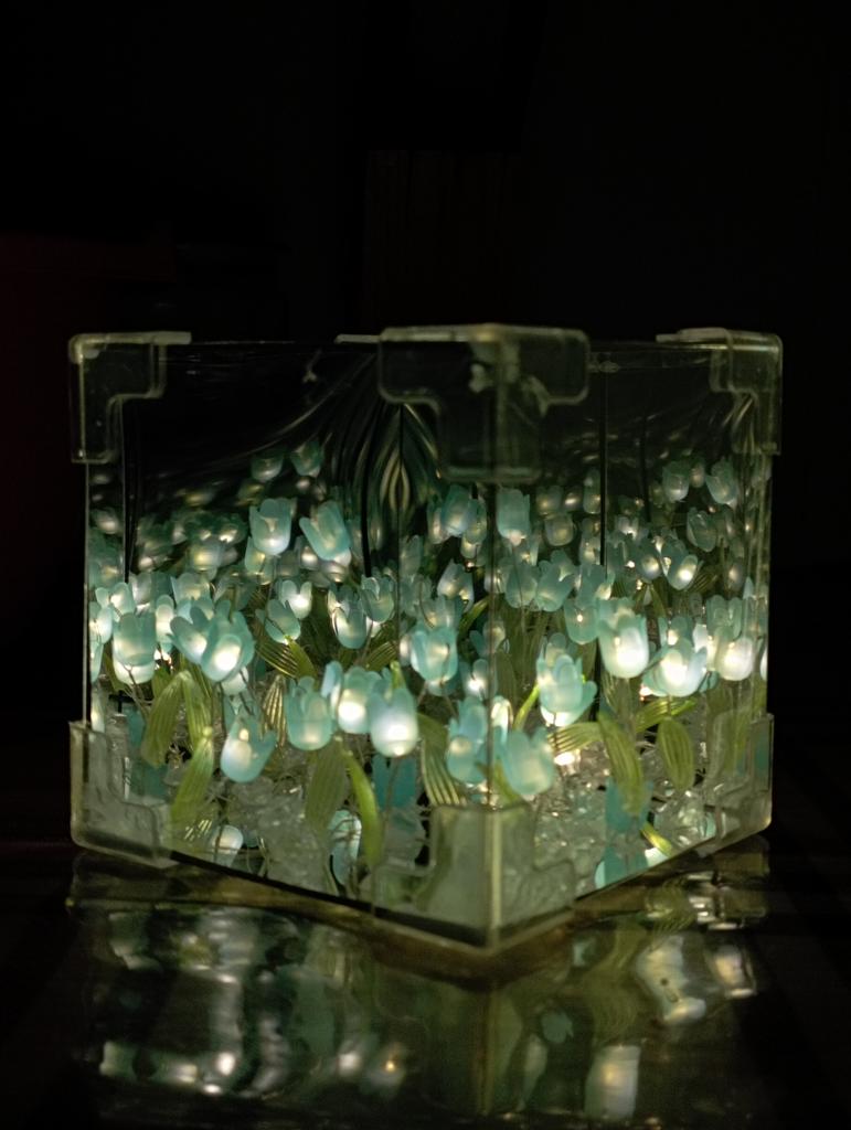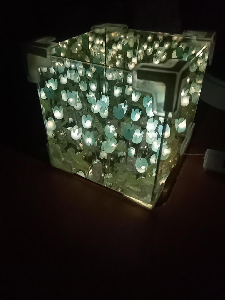 Creative Diy Tulip Flower Sea Cube Small Night Lamp Material Kit for Girlfriend Gift Bedroom Sleeping Table Lamp Handmade Craft
