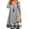 Womens Long Sleeve Casual Loose Dress Patchwork Decorated Button Plaid Print Dress