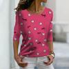 Tops For Women 3D Blue Butterfly Print Round Neck Long Sleeve T-shirt Fall Casual Slim Pullover Women's Long Sleeve Top