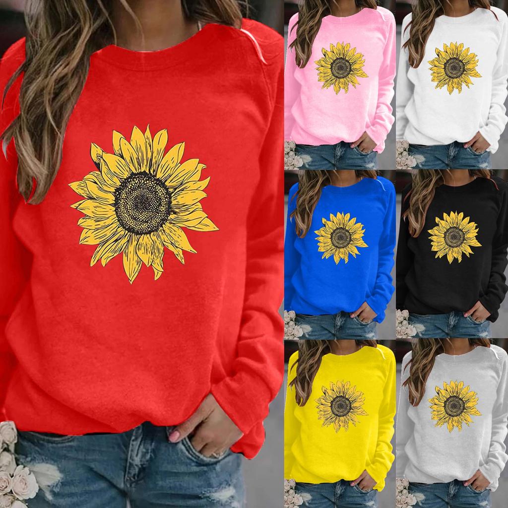 Women's Fashion Casual Print Round Neck Sweater Loose Sports Tops Pullover