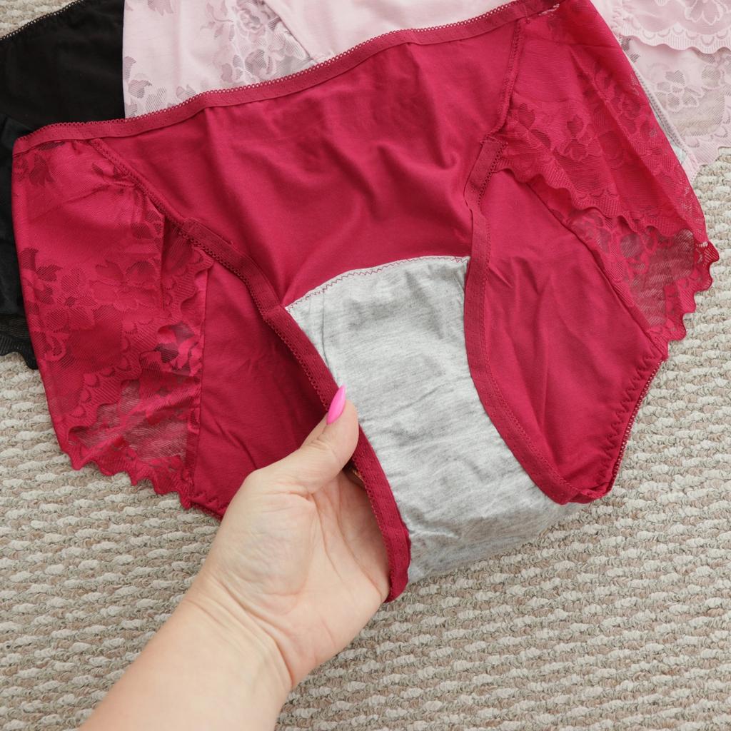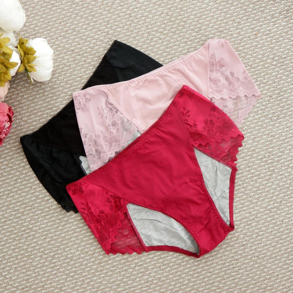 1/3Pcs Middle Waist 3-Layer Leak-Proof Women’s Physiological Panties, Lace Women’s Underpants, Comfortable Breathable Menstruation Women's Underpants