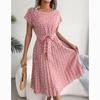 New Summer Short Sleeve Casual Dress Women Sexy Floral Print Pleated Dress for Women Summer High Waist A Line Loose Dresses 24116