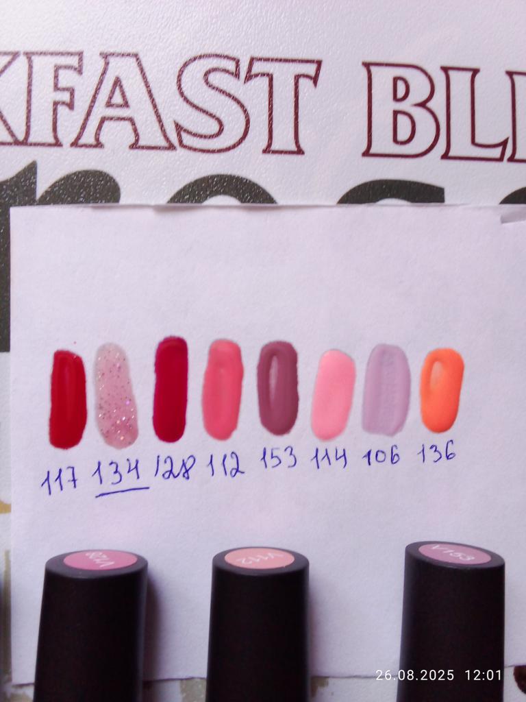 The polishes arrived intact and undamaged, individually packaged, I really doubt that there are 8 ml of them, there is no expiration date, some colors are not the same as in the palette: -purple is not so bright, - blue mixed with purple, -burgundy- like brownish pink (like a rotten cherry) - brown and green - light. However, overall I liked the polishes, as I used them for home use, that is, for myself... After using them, I'll add how they wear...