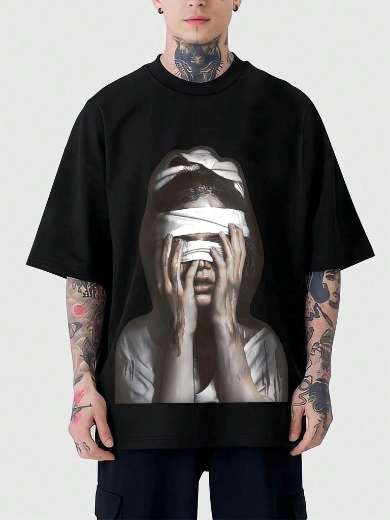 ROMWE Street Life Men's Summer Printed Short Sleeve Casual T-Shirt With Characters