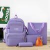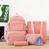 5pcs Elementary School Five Piece Backpack High School Students Large Capacity Multi Pocket Multi Functional Backpack Solid Canvas Leisure Bag
