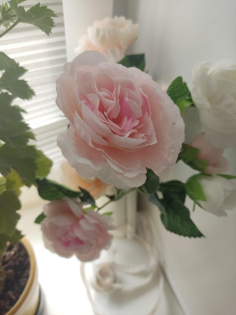 The flowers in the photo are actually different in size, this is not a peony, but a small rose in size.