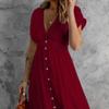 Women Maxi Dress Long Holiday V Neck Beach Buttons Ladies Summer Sundress