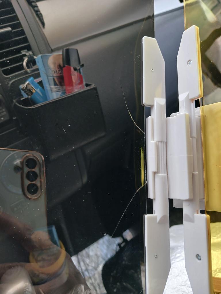 The idea is very good, the execution is so-so. It does not fit the Nissan X-trail T-32 visor, the mount is too small. I had to mount it on one mount (oil). Tight plastic gears - be sure to lubricate them. Otherwise, the glass will crack when using them.
