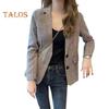 Women Spring Autumn Suit Coat Lapel Long Sleeve Single Breasted Suit Jacket Plaid Print Flap Pockets Business Outwear