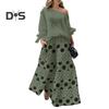 Elevate your professional style with this Women's Shirt Pants Set, a versatile 2-piece ensemble that exudes sophistication and femininity. Crafted from premium fabrics, this casual suit offers a luxurious feel and comfort. The set includes a digital print off-the-shoulder balloon sleeve top paired with long trousers, creating a chic and relaxed forest-inspired look.