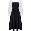 Summer Women Dresses Long Sleeve Elegant Square Collar Soft Vintage A-line Black French Style Dress PLUS Size