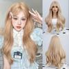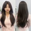 24 Inch Black Tea Curly Wigs Thick Bangs Separated Fiber Synthetic Heat-resistant Natural Party or Selfie For Women Korean Fashion