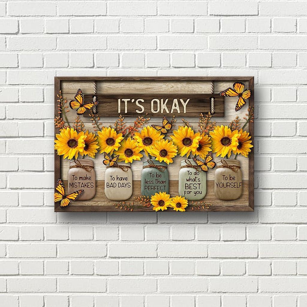 Farmhouse Vintage Poster Prints It's Okay Soul Comfort Vases of Flowers and Butterflies Wall Art Canvas Painting Room Home Decor