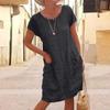 Women's Summer Casual Solid Color Short-sleeve O-neck Stitching Loose Pocket Cotton Linen Dress