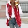 Women's Fashion Stitching Loose Hoodies Sleeveless Plush Zipper Coat