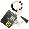 This product description provides information on the premium leather used for both the keyring and wallet. The PU leather is of high quality, resistant to stains and water, and simple to care for. This stylish wristlet purse is ideal for various occasions such as weddings, parties, proms, balls, and everyday use.