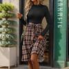 YYFS Women's Fashion Fall Winter Plaid Print Long Sleeve Stand-collar High Waist Casual Dresses