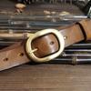 Women's Korean-Style Leather Belt Vintage Crumpled Trendy Brass Buckle Genuine Leather New Pure Cowhide All-Matching Jeans Belt