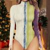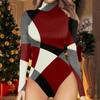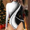 Women's Fall And Winter One-piece T-shirt Slim Long Sleeve Half High Neck Vintage Printed Bodysuit Tops