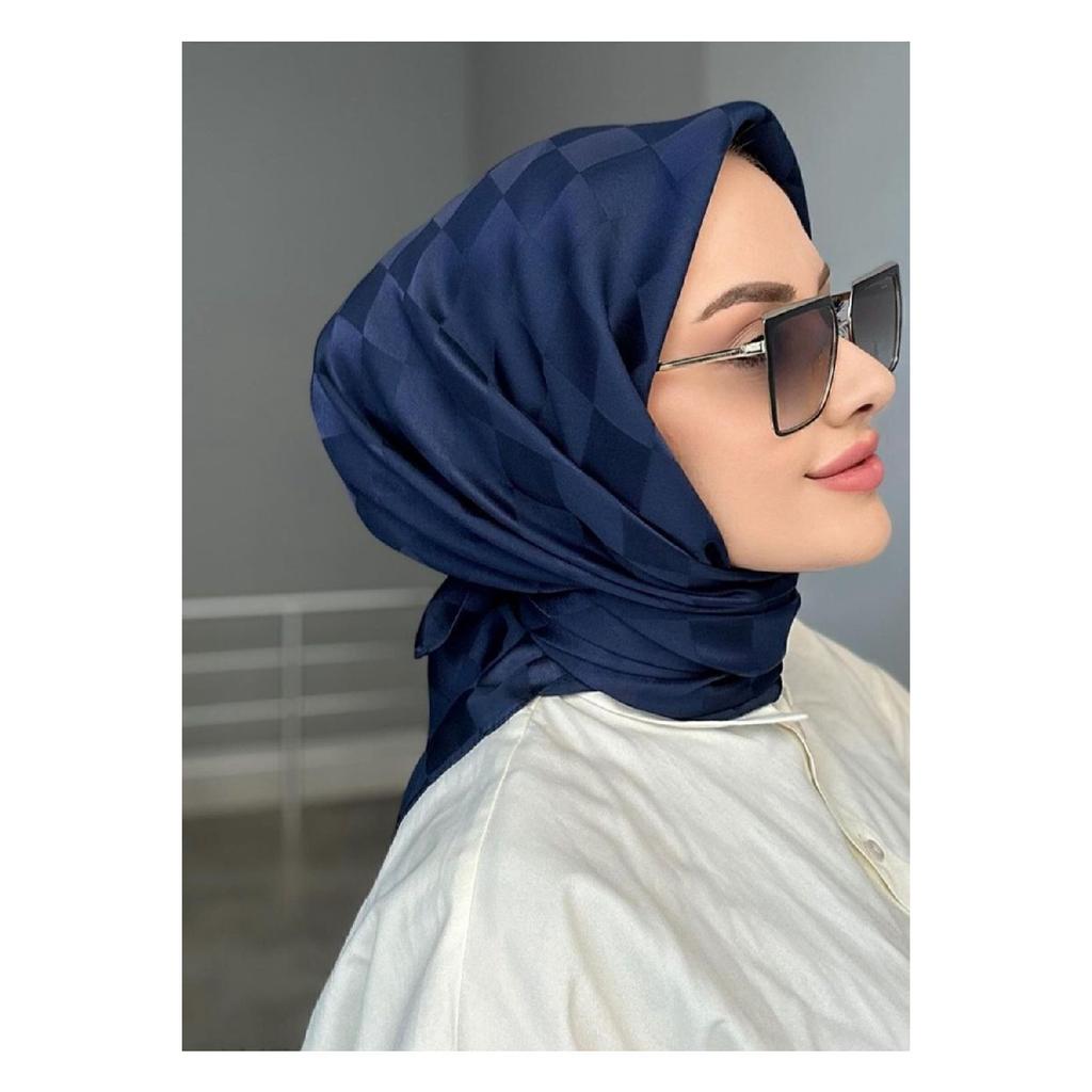 Checker Pattern Dark Navy Blue Jacquard Scarf