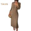Design: Embrace elegance with the fishtail hem design and intricate metal button decorations that adorn this dress, accentuating your body proportions and creating a visually elongated silhouette for a sophisticated look.