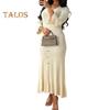 Pairing: Elevate your ensemble by accessorizing this dress with delicate necklaces, bracelets, earrings, chic woven bags or clutches, along with sandals or high heels to complete your polished and refined look for any occasion.