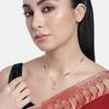 This mangalsutra is adorned with high-quality American synthetic lab-grown diamonds, which provide a stunning and realistic sparkle. The combination of gold plating and black beads gives it a timeless and classic appeal, perfect for daily wear or special occasions.
