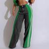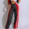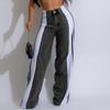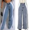 Fashion Stripe Splicing Jeans Denim Wide Leg Pants Women High Waisted Button Straight Trousers Casual Female Bottoms