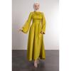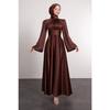 Spanish Satin Hijab Evening Dress With Wrapped Sleeve Waist