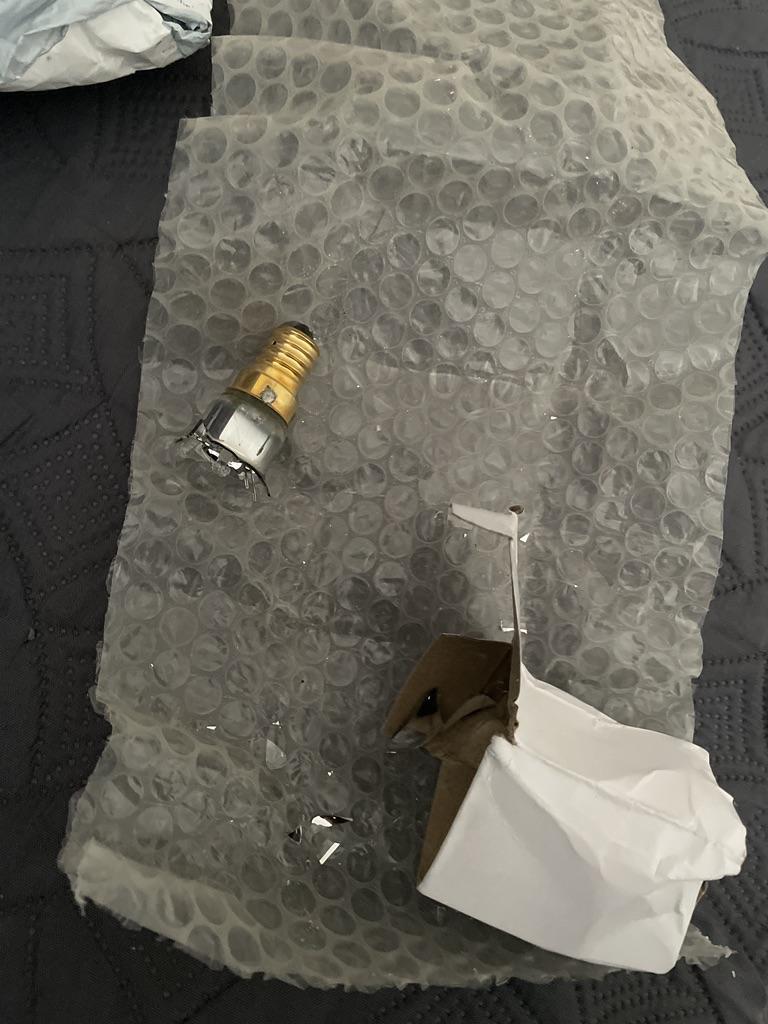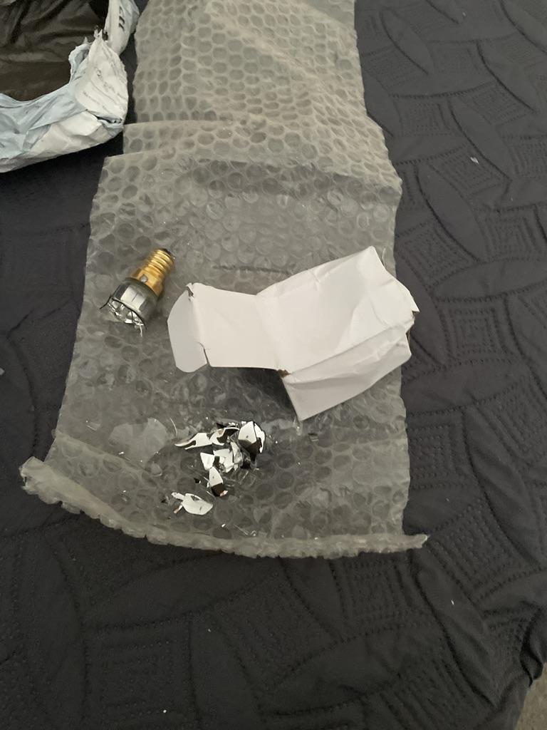 Item completely broken, which is not surprising. A small fragile light bulb packed in a little carton without cushioning material can never survive the journey.