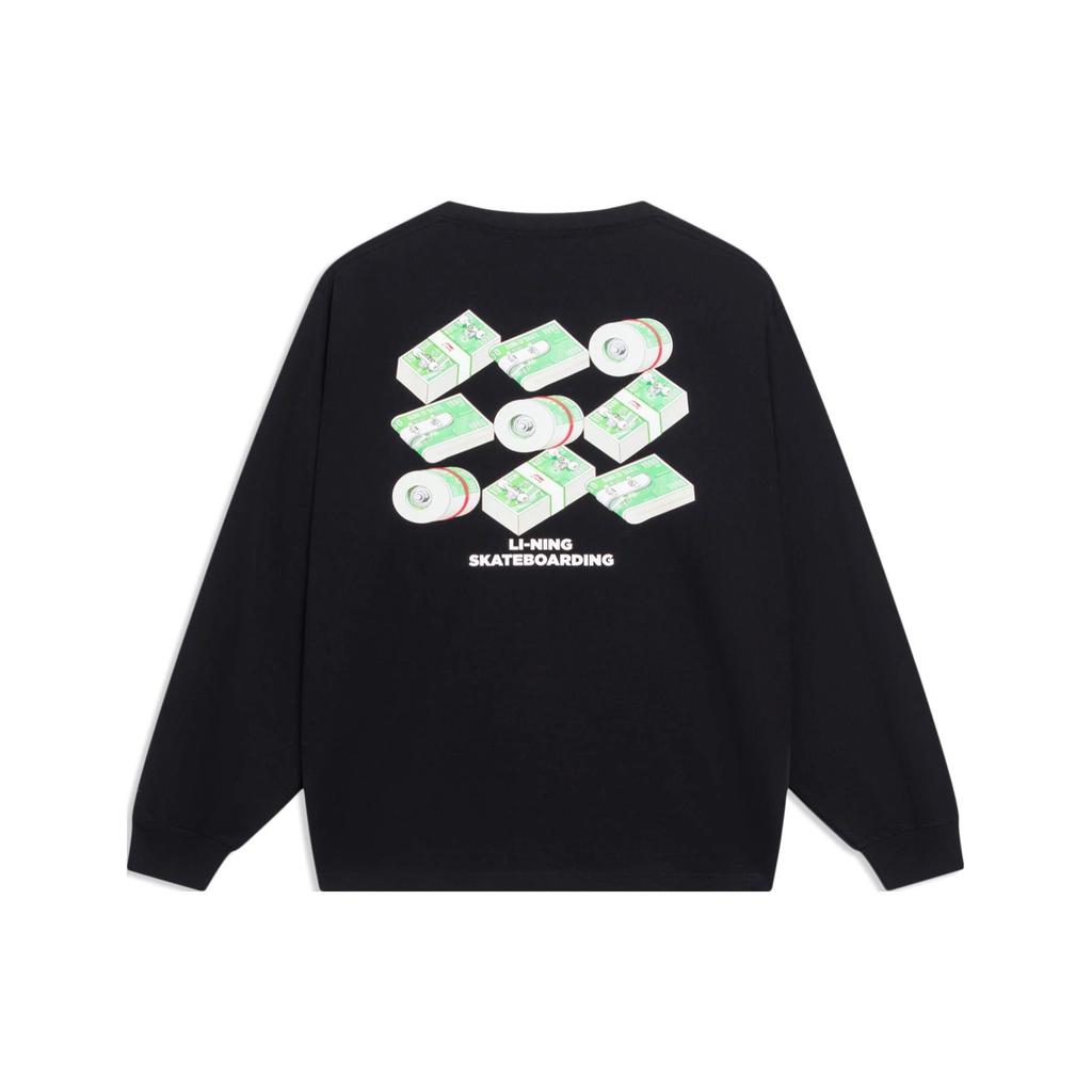 Li-Ning Skateboard Series Back Print Crew Neck Long Sleeve T-Shirt Unisex Tops Black AHST103-3