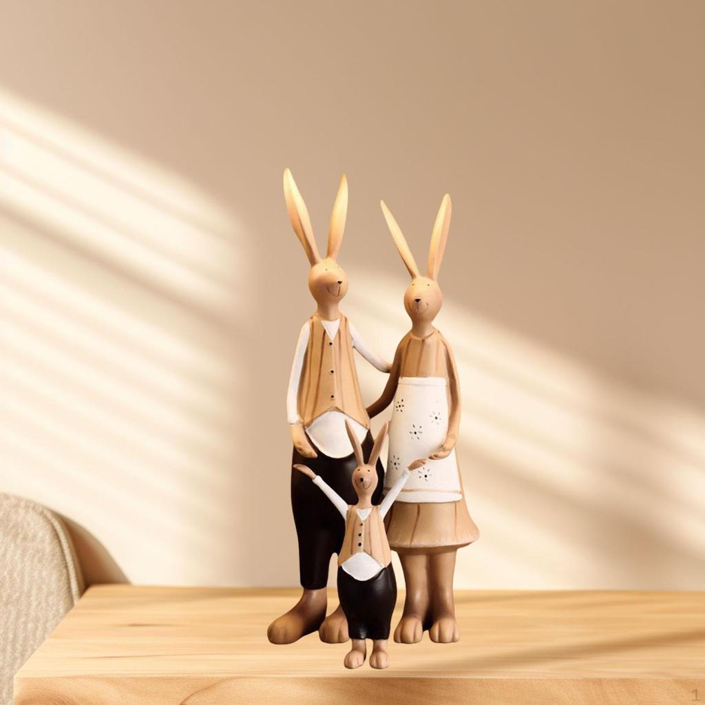 Rabbits Family Figurine Standing Statue Handmade Craft Table Decoration Centerpiece for Living