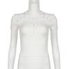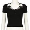 Halter Neck Lace Trim Bow Cute Black Y2K T-Shirt Women Button Up Slim Short Sleeve White Tees Sweet Balletcore Clothing