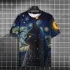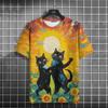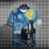 Oil Painting Cat Pattern T-shirt Short-sleeved Top