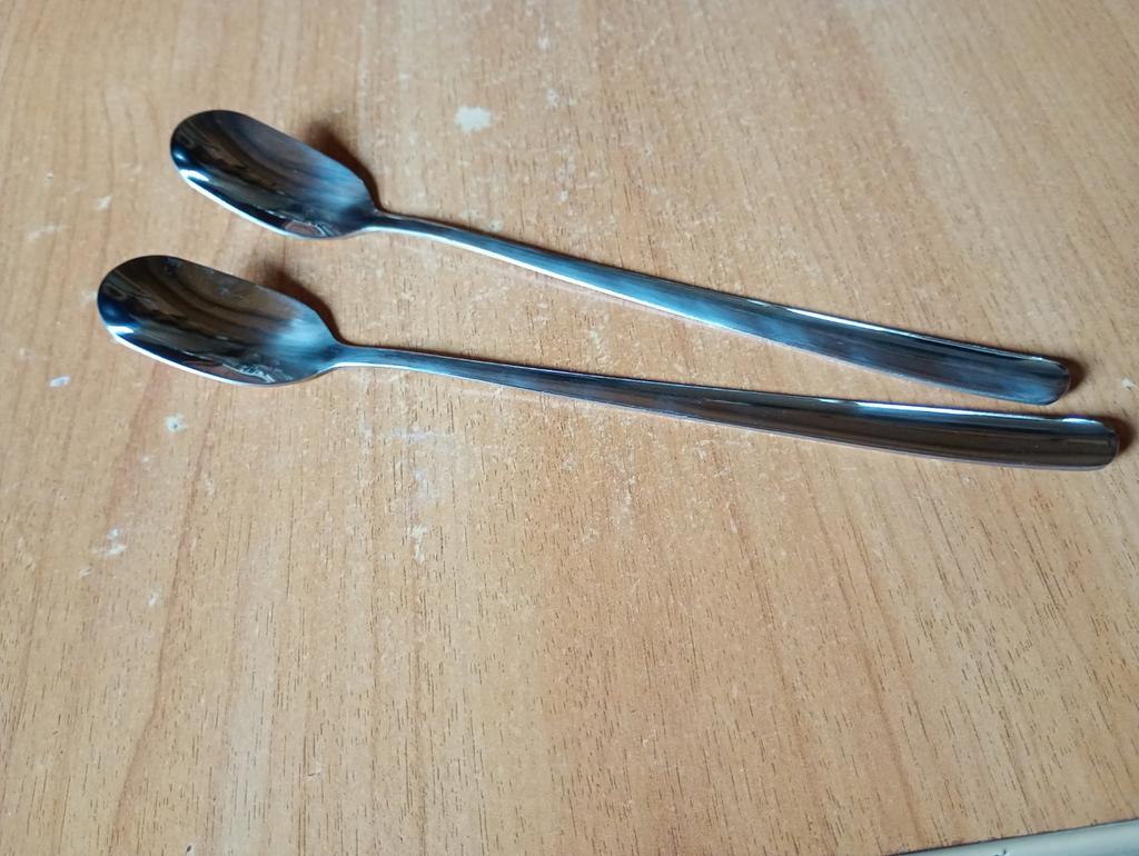 Nice long spoon that I use for frappés. The pictures are deceiving, though; it's just one spoon, not two.