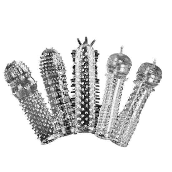 5 different styles of penis covers for men, which can be worn on finger as well.