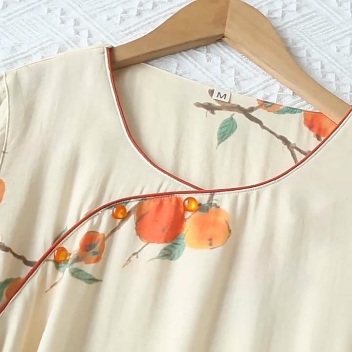 Spring / Summer Thin Chinese National Style Women's Pajamas Loose Bamboo Cotton Seven-quarter Sleeves Loungewear