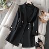 Women Turn Down Collar Blazers Fashion Solid Casual Double Breasted Coats Office Ladies Long Sleeve Jacket