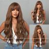 European and American Style Women's Long Gradient Brown Wig with Blunt Bangs Ladies Natural Looking Fluffy Water Wave Curls Wig