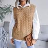 VEZFAA Women's Fashion Casual Fall Winter Solid Color Print Sleeveless O-Neck Sweaters