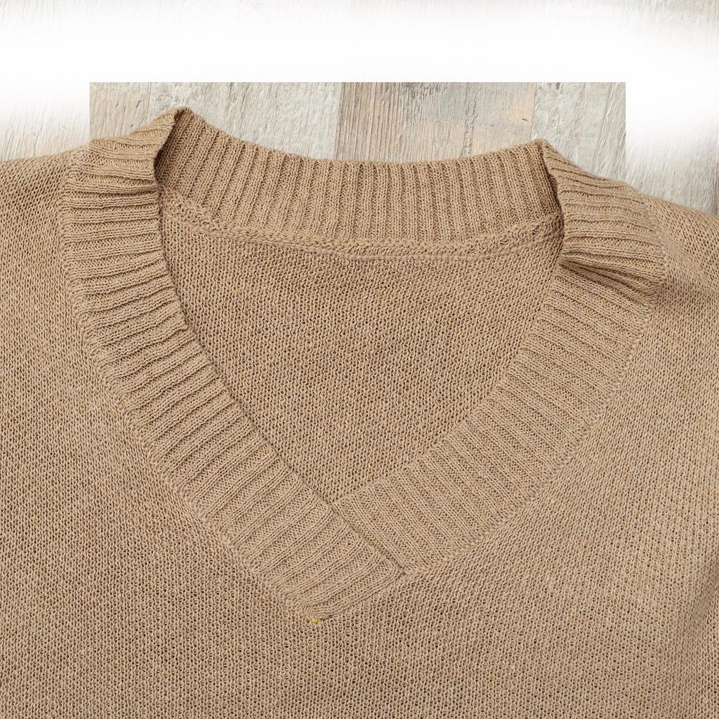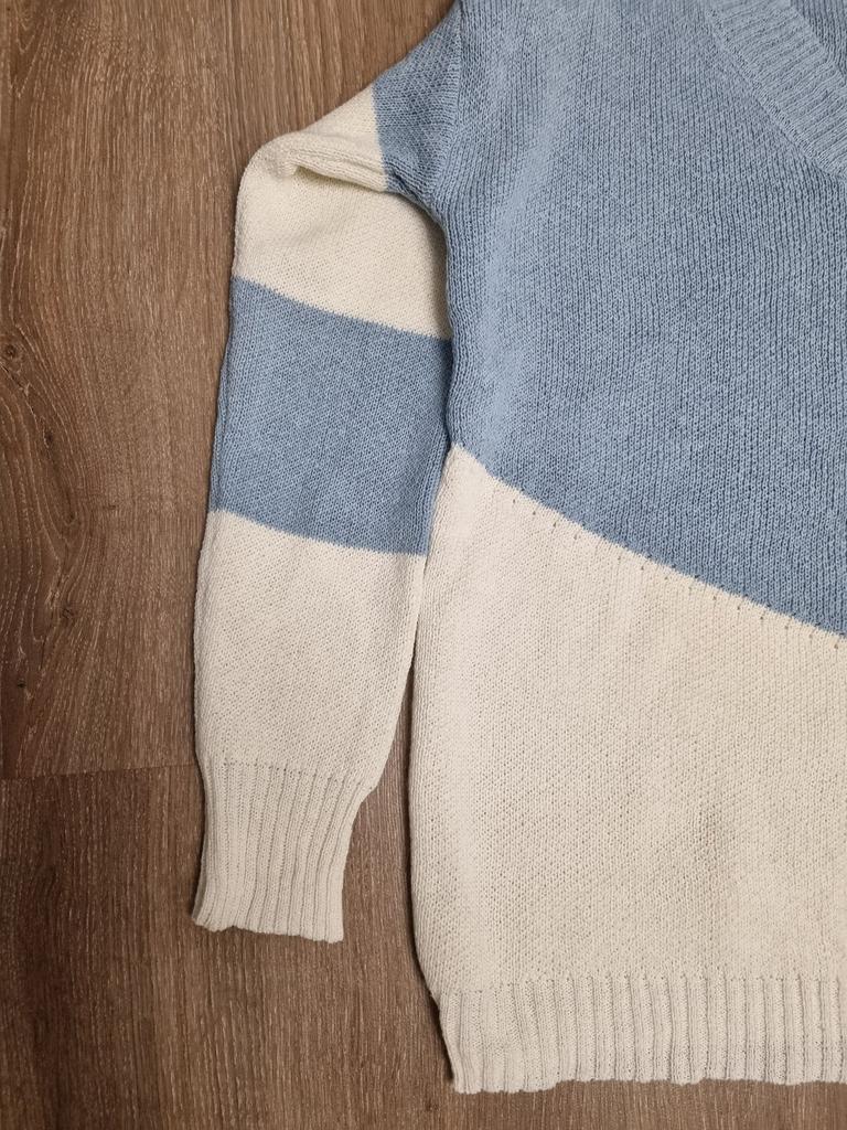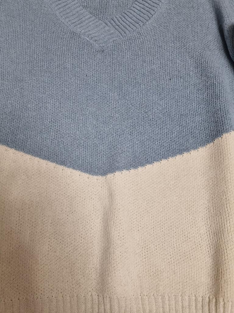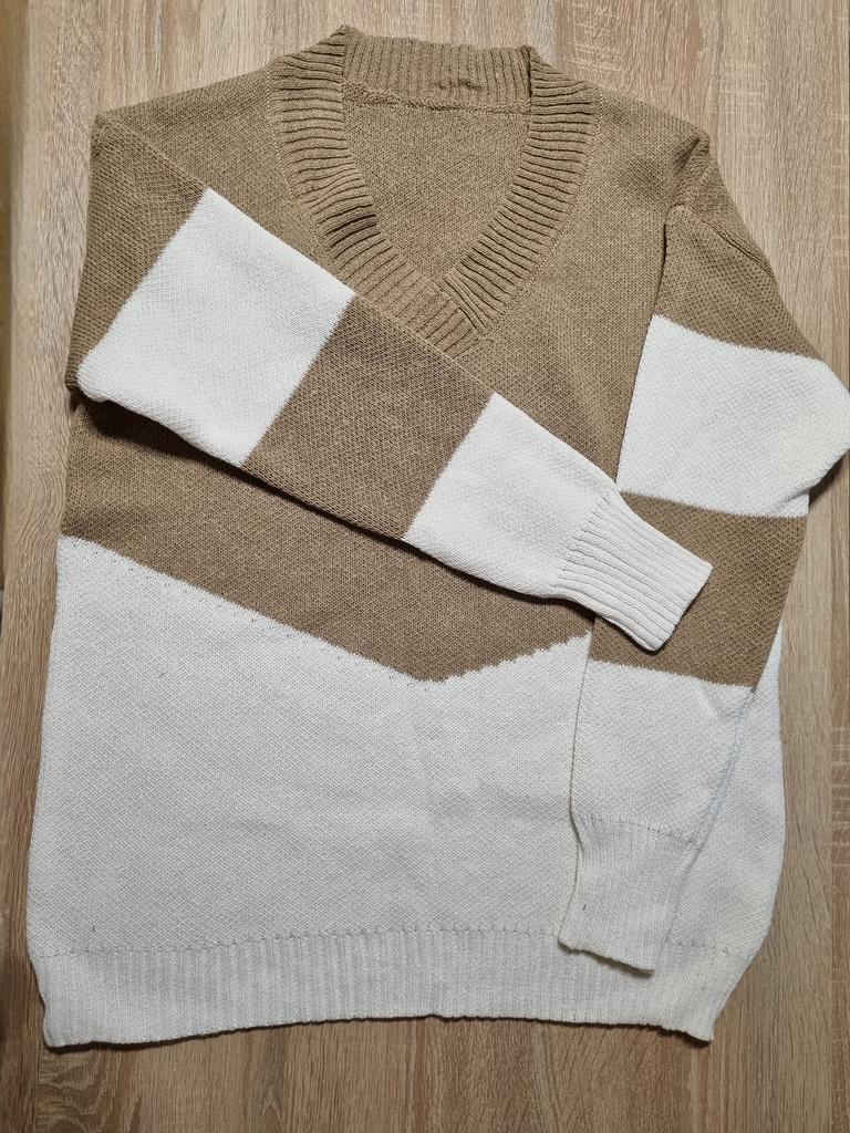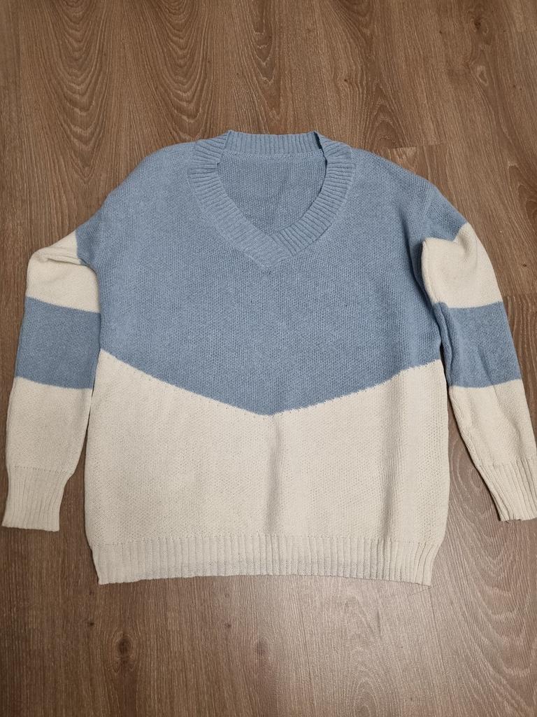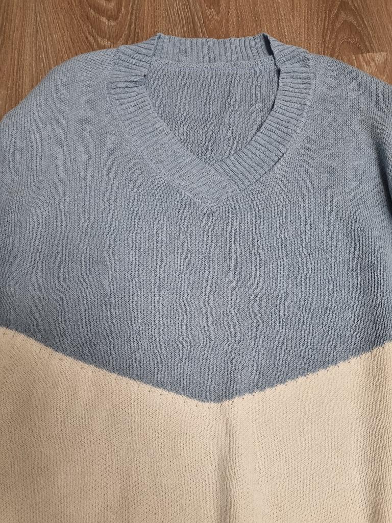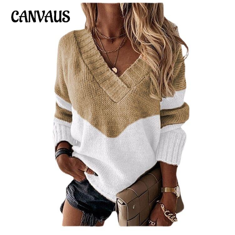 Autumn and Winter Women's Plus Size Pullover V-Neck Loose Type Sweater Patchwork Colour Collision Knit Sweater