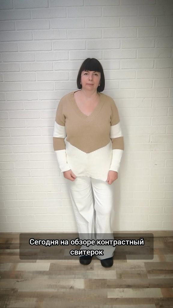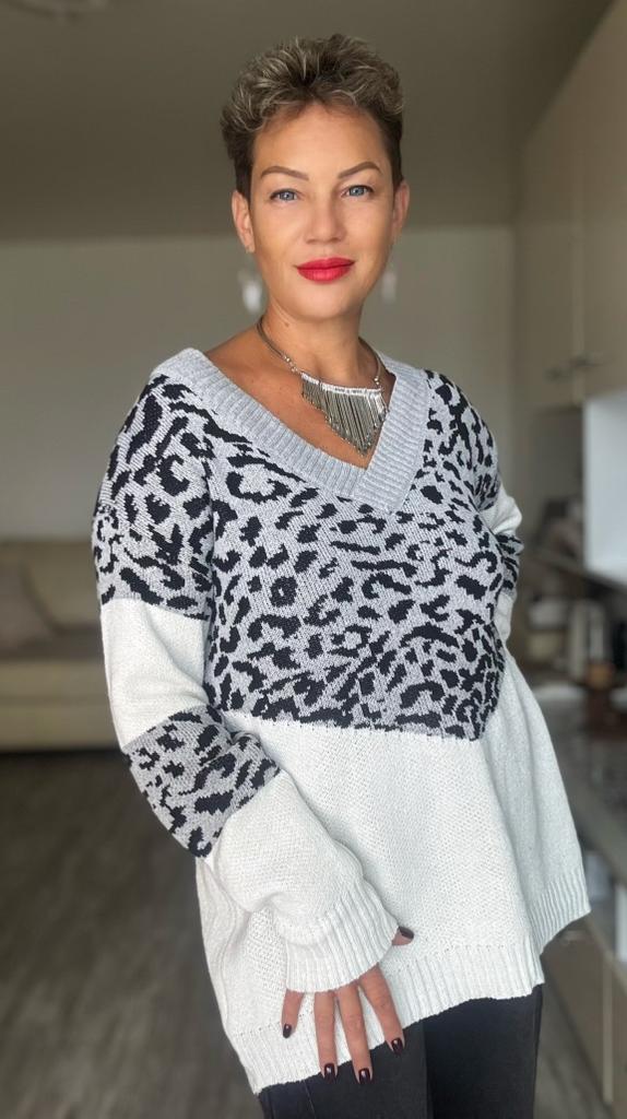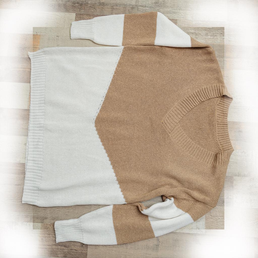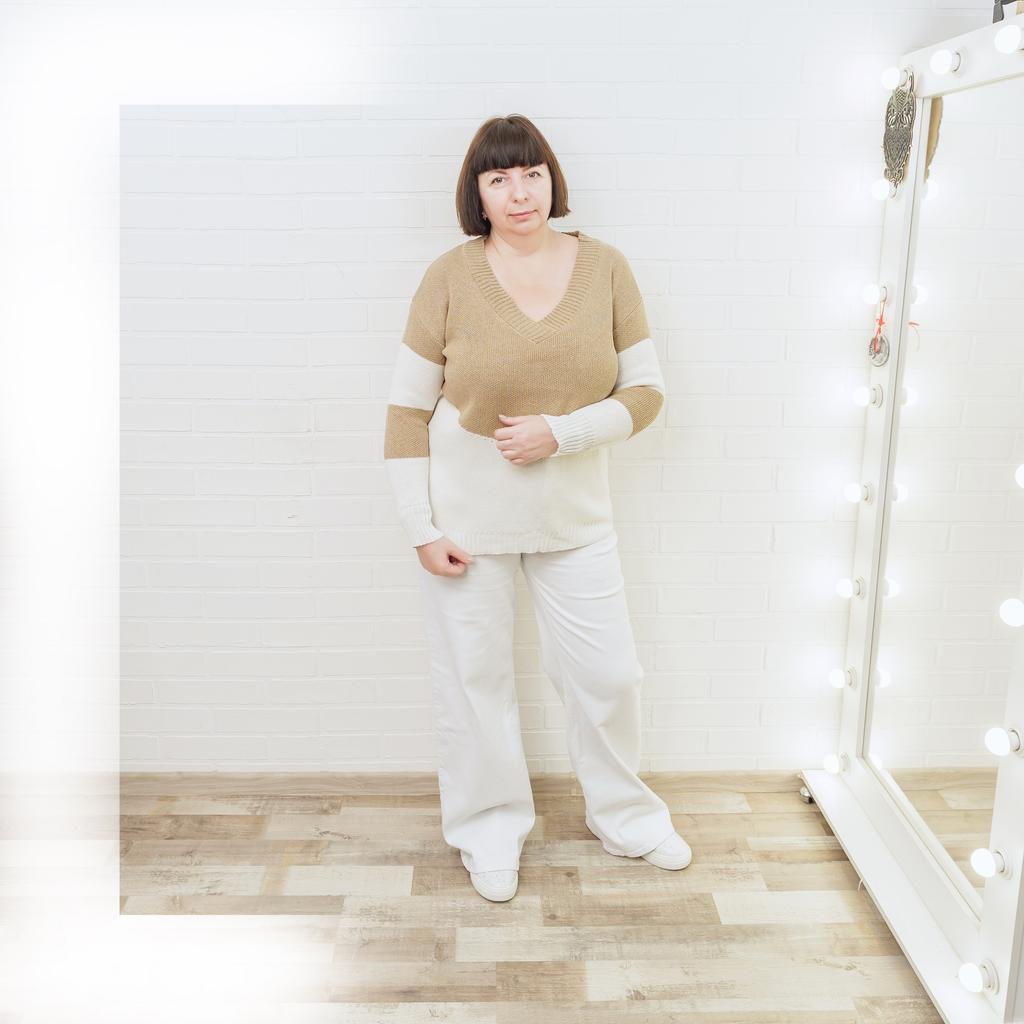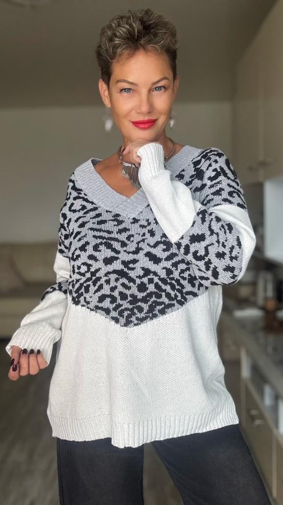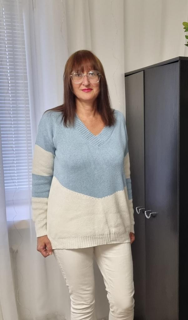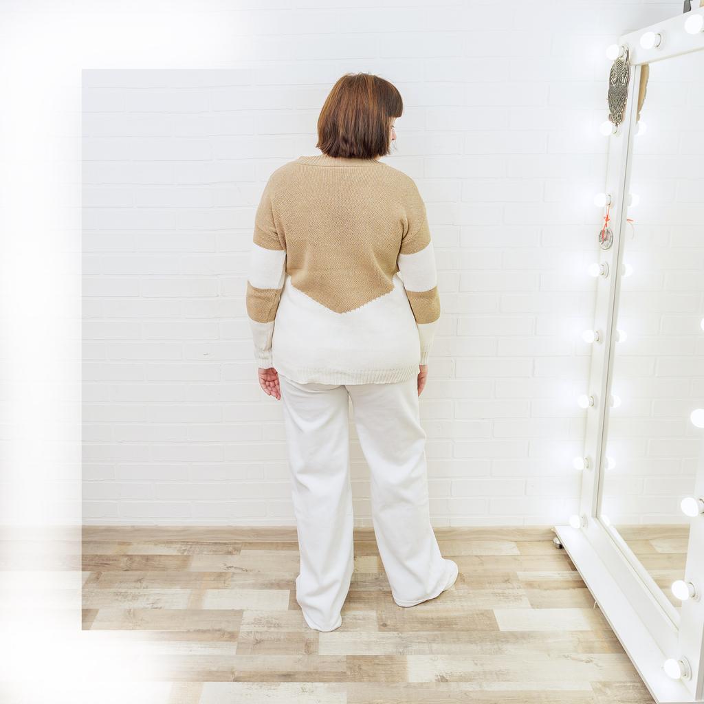 Autumn and Winter Women's Plus Size Pullover V-Neck Loose Type Sweater Patchwork Colour Collision Knit Sweater