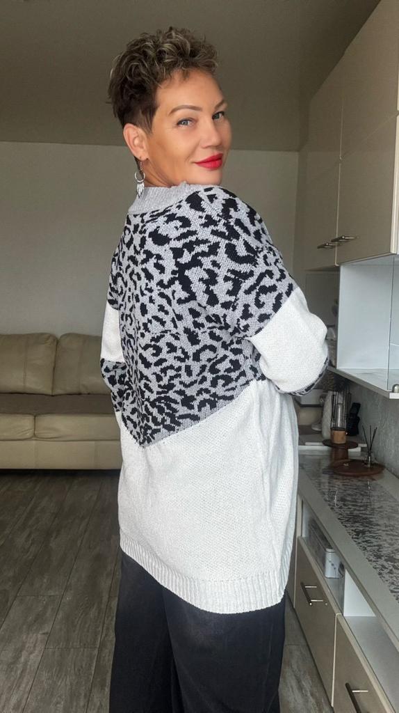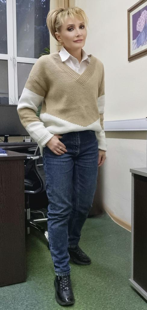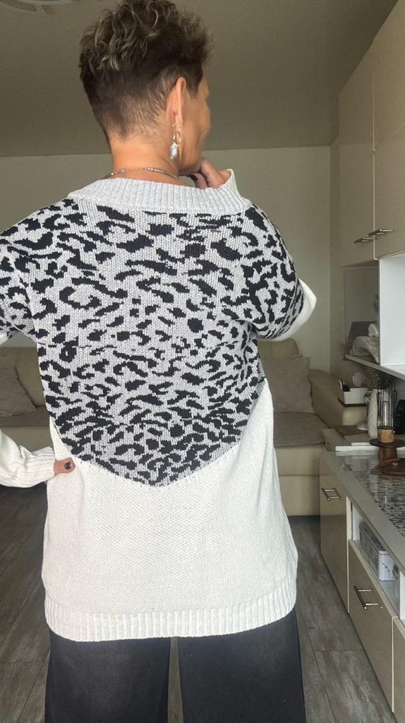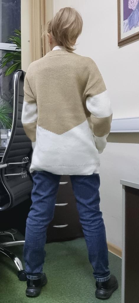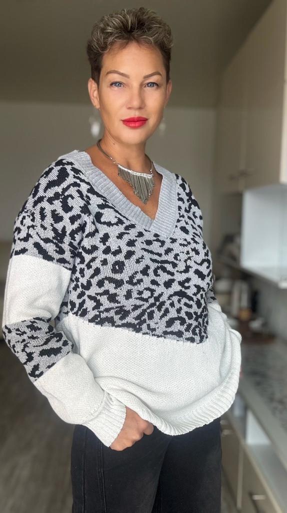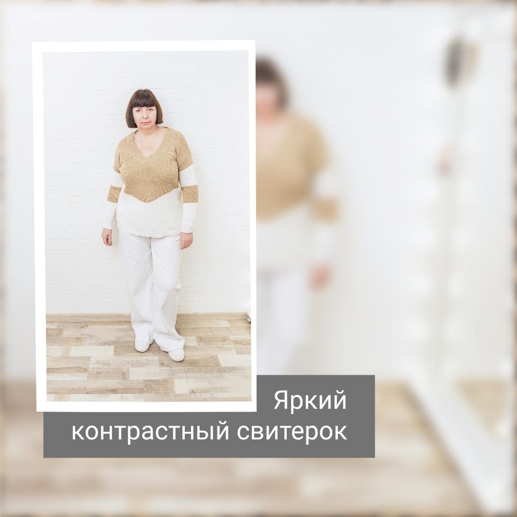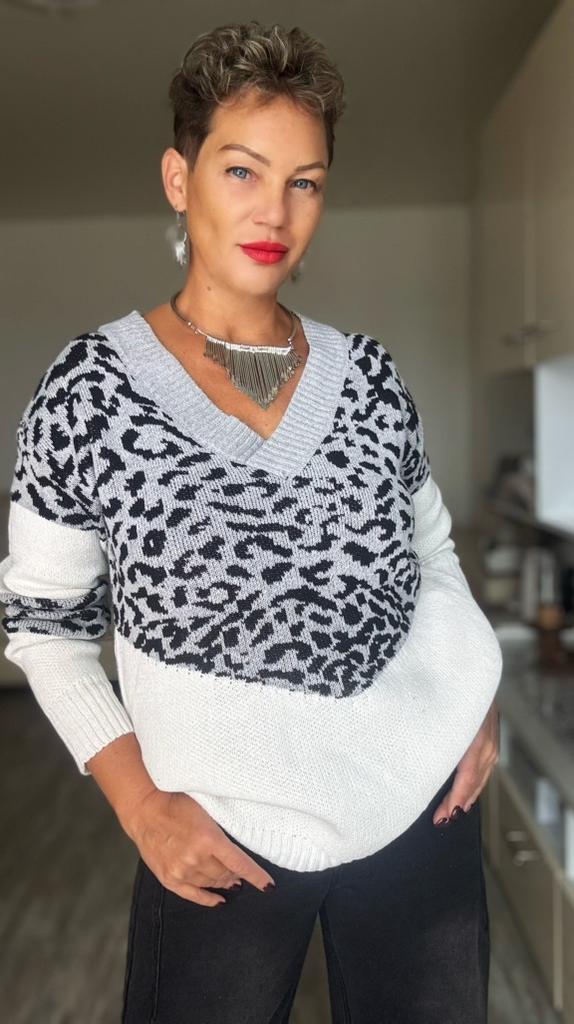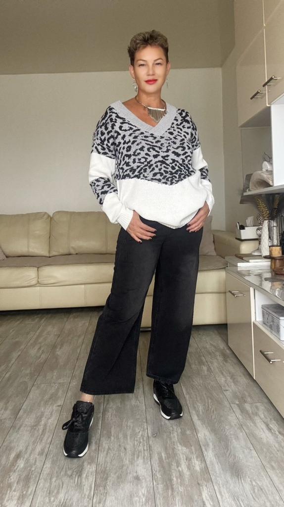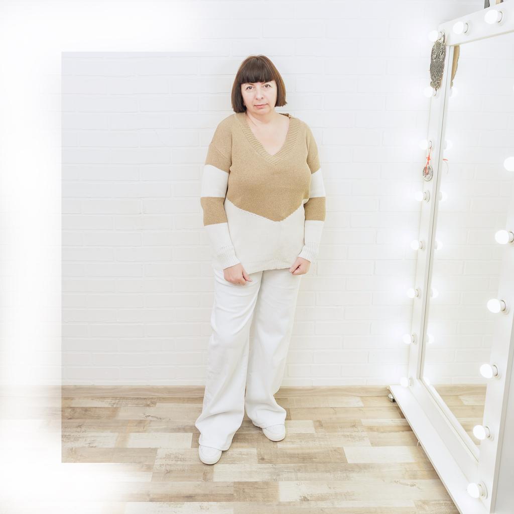 Autumn and Winter Women's Plus Size Pullover V-Neck Loose Type Sweater Patchwork Colour Collision Knit Sweater