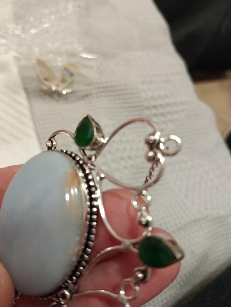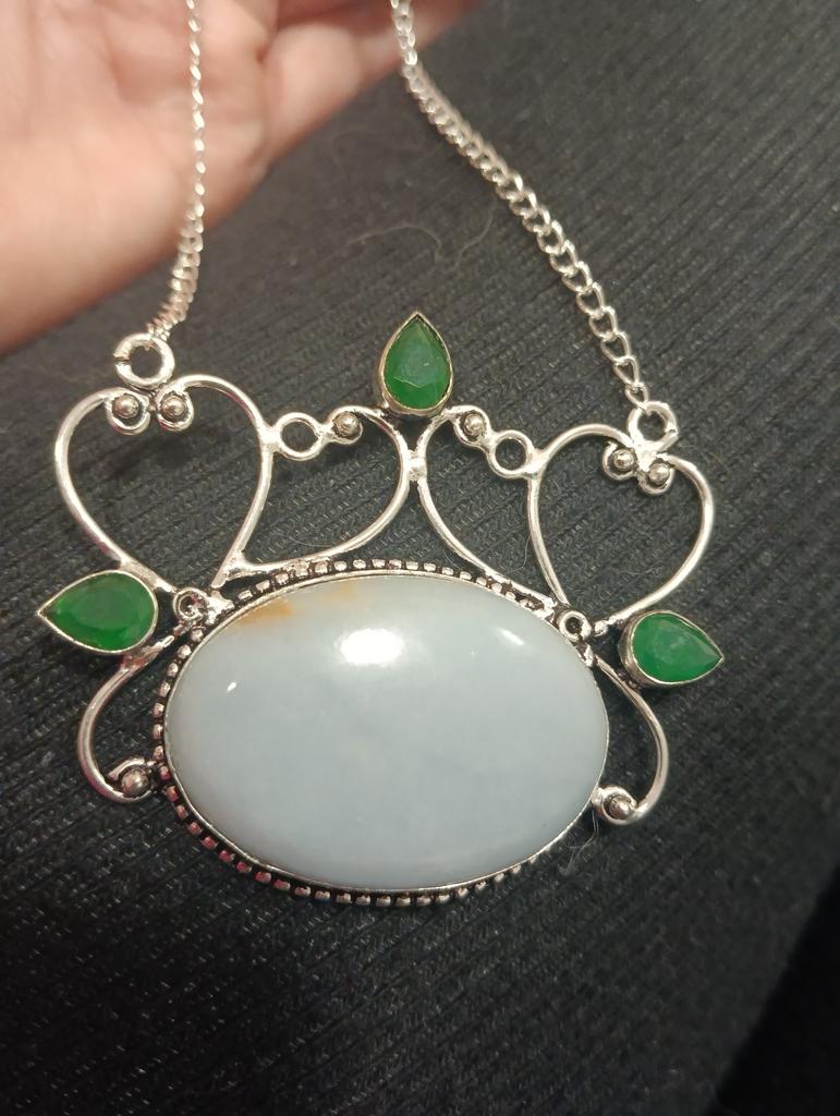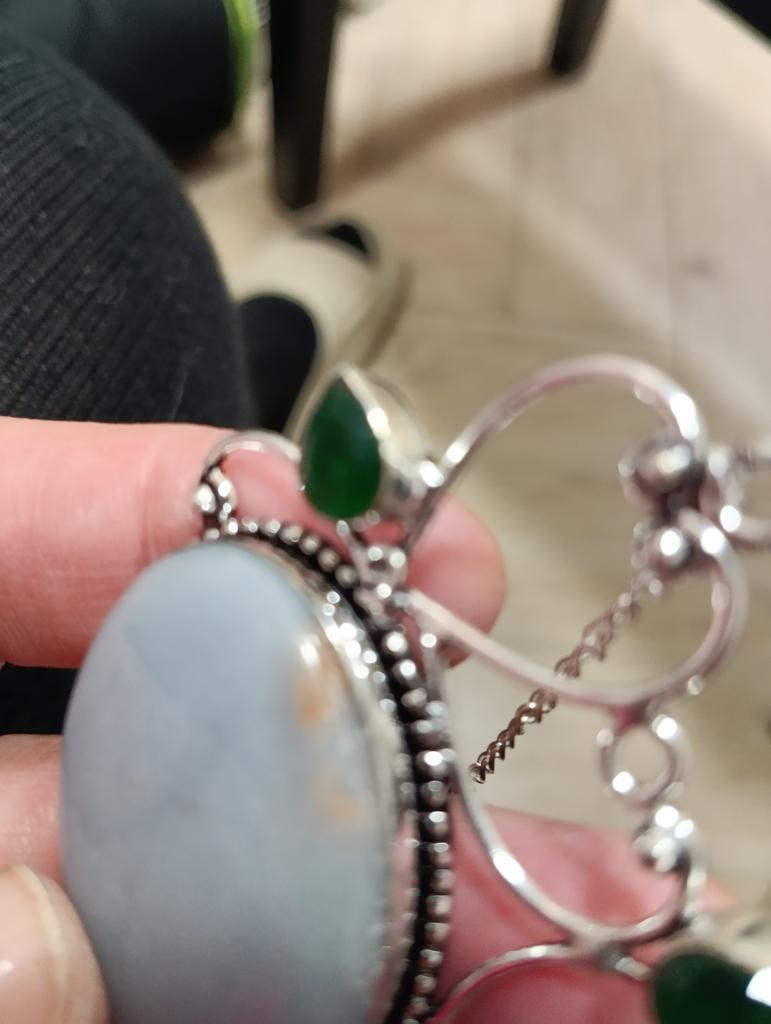 Natural Angelite Stone, Amethyst 925 Sterling Silver Jewelry Pendant 2.21" N3E32